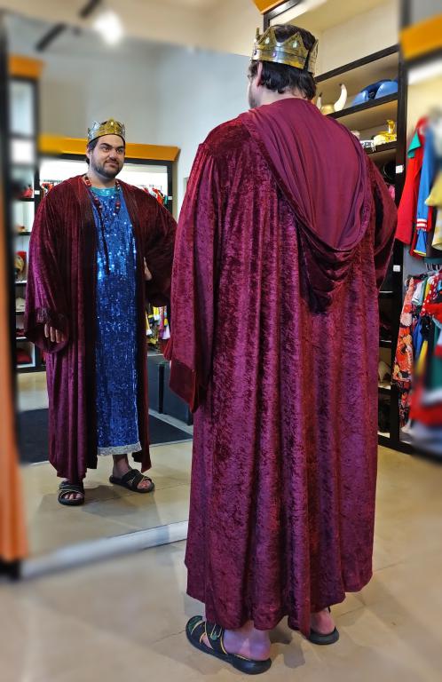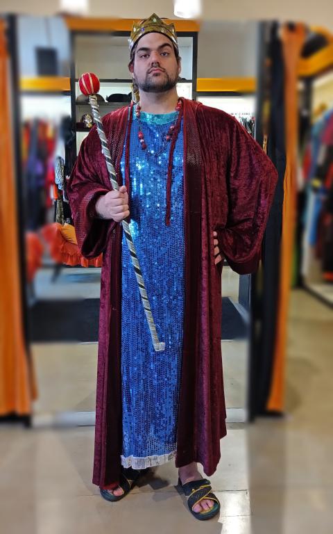 Disfraz compuesto por: Túnica, capa, corona y cetro.